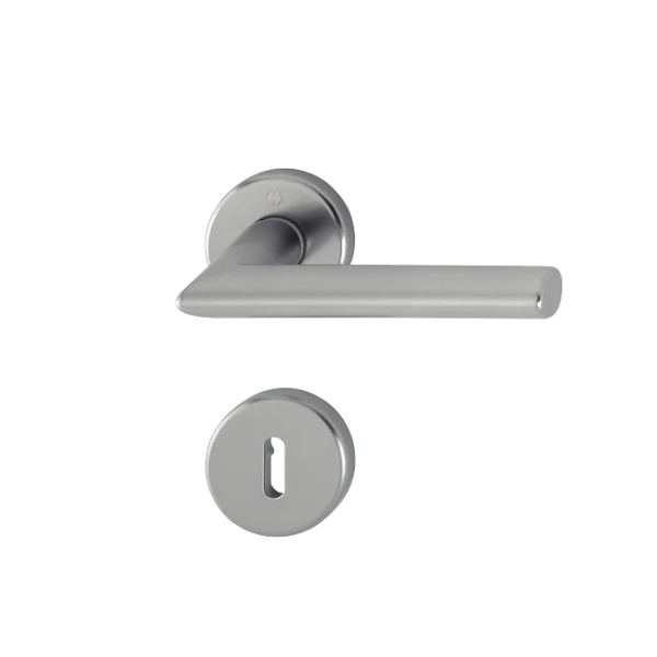 Ensemble sur rosace clé en L – Stockholm Hoppe – Aluminium aspect inox porte de 38 – 47 mm carré 7 mm