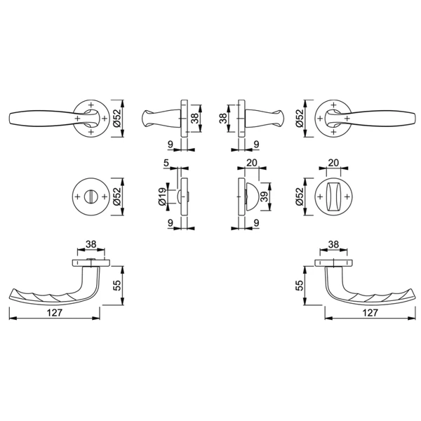 | Type de produit | Garniture pour porte de WC/Salle de bain (poignée/poignée) |