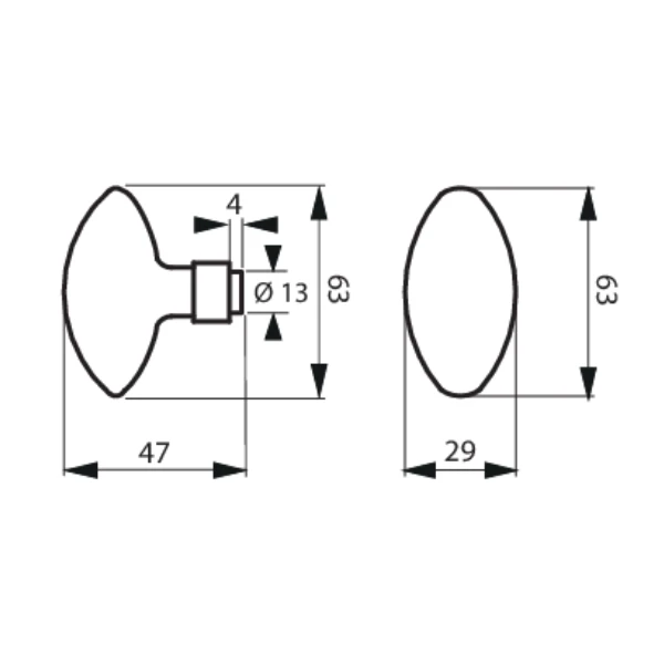 - Bouton en forme d’ovoïde en alliage avec carré acier.