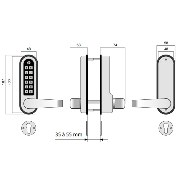 | Type de pêne | Serrure tubulaire à pêne 1/2 tour |