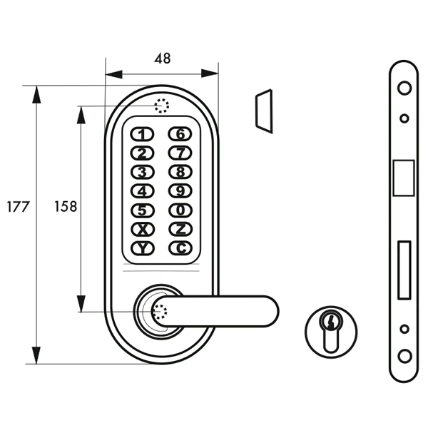 - Combinaison modifiable composée de 2 à 8 chiffres ou lettres (8000 codes possibles).